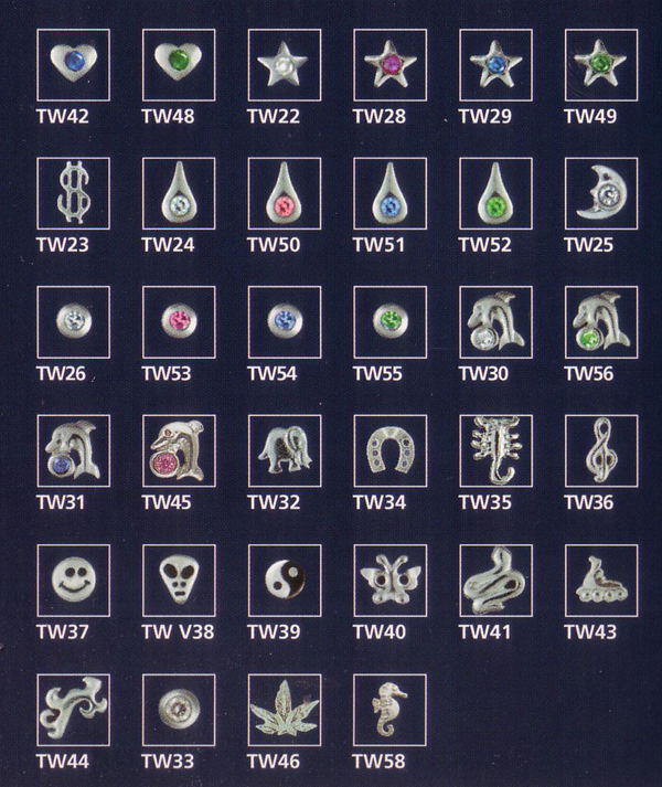 Hier ein kleiner Auszug aus dem Zahnschmuck-Sortiment: